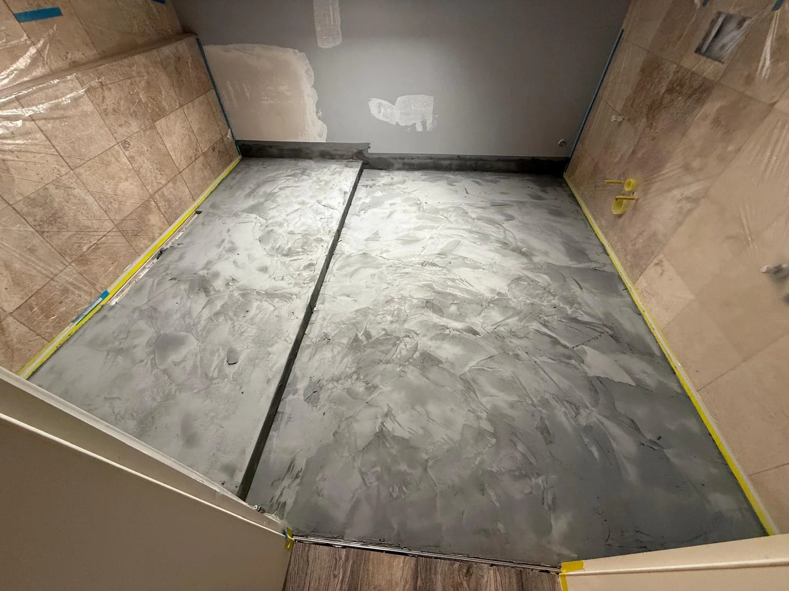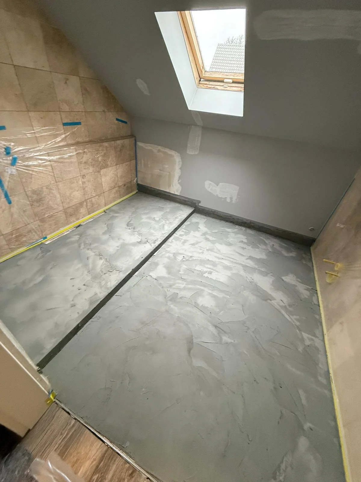 Staub, Rückbau, Vorbereitung und dann der Moment, wenn aus glattem Estrich ein moderner Boden entsteht, der den Charakter des gesamten Raumes verändert.